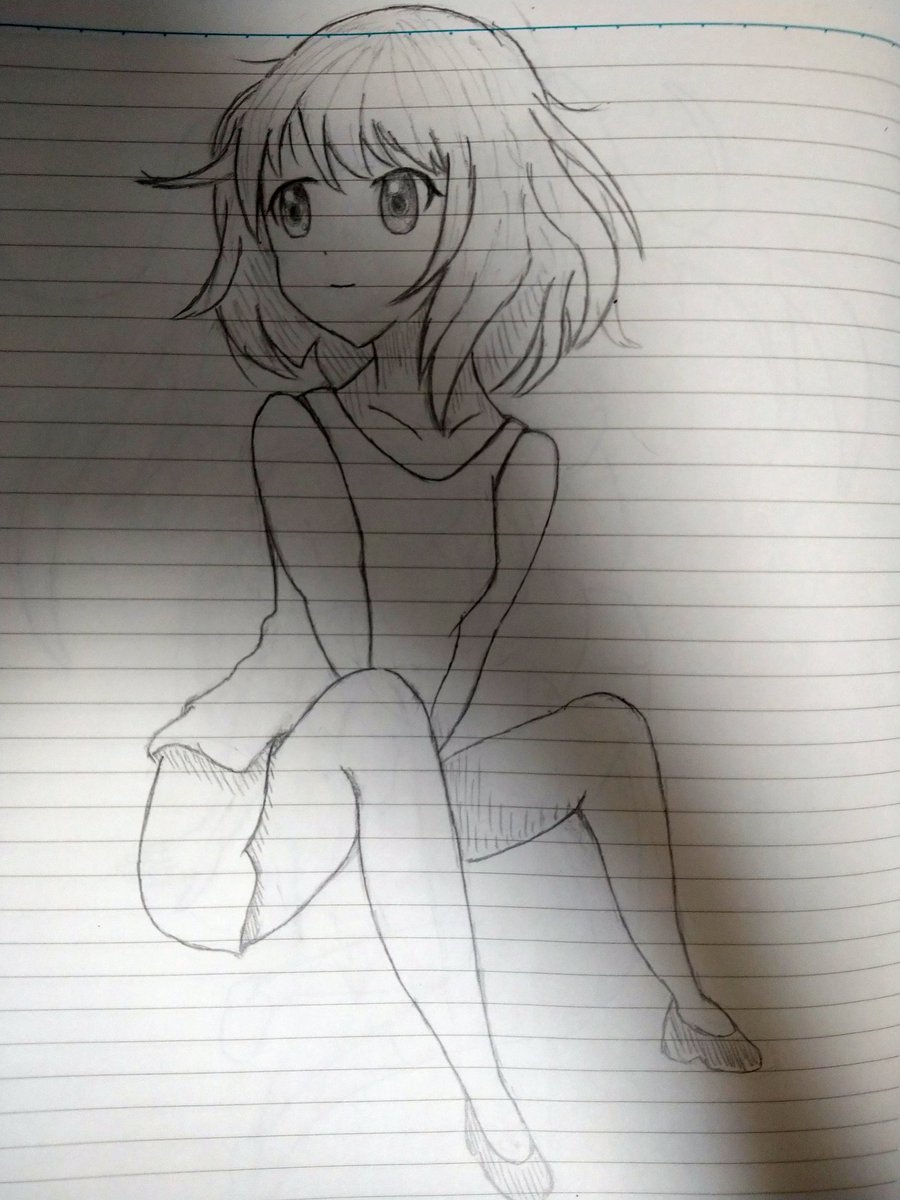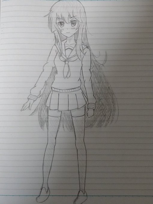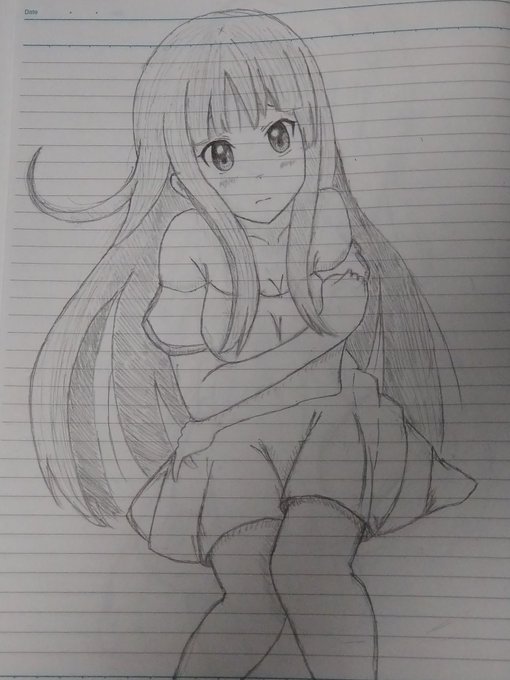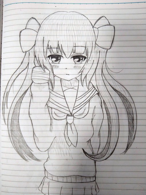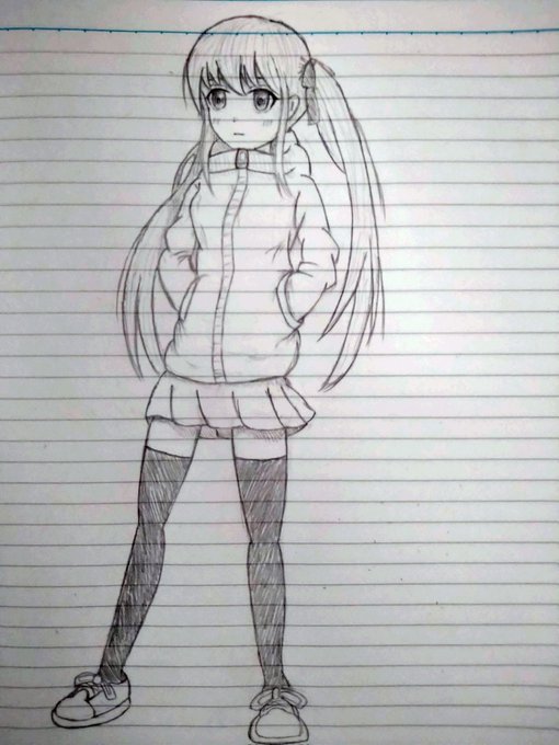 #妹キャラ #イラスト #鉛筆 明日の期末試験頑張らねば… やはり、手を描くのが難しいですね