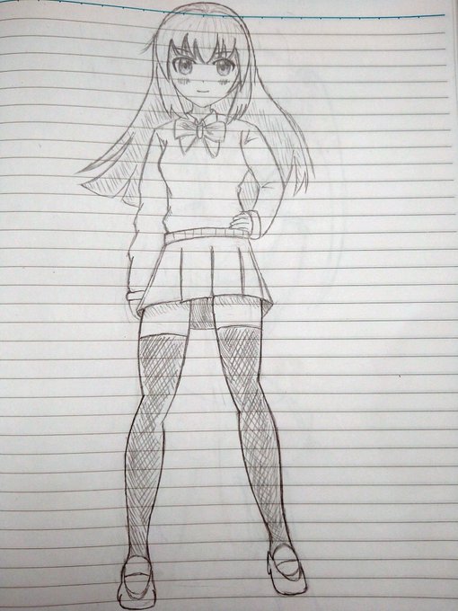 4 29 #女子高生 #イラスト #鉛筆 #組足 土日月暇だったので、割とちゃんとかけたかも… 靴は少し雑ですが 22/10/17 16:43