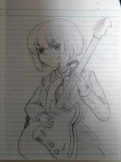 1 13 #女子高生 #ギター #イラスト #鉛筆 少しギターのクオリティーをあげて、作画を変えてみました! 22/11/03 23:14