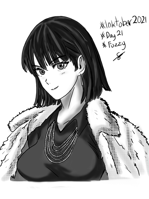 2 12 Day 21 Fuzzy #inktober #inktober2021 #fuzzy #OnePunchMan #fubuki #drawing #monochrome 21/10/20 19:00