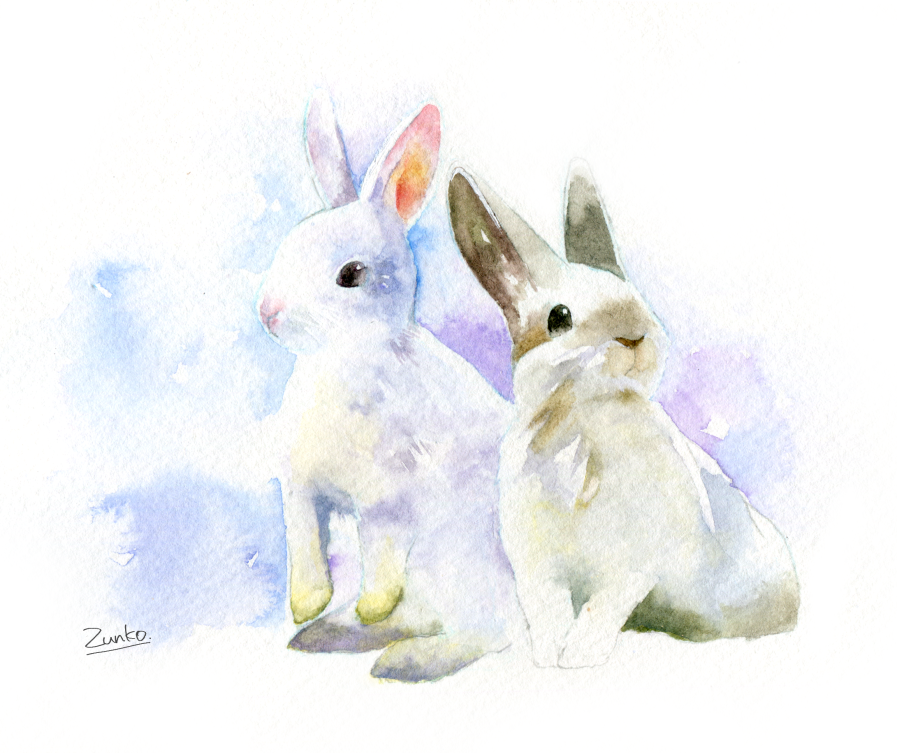最近描いた水彩画です。うさぎは年賀状で送らせていただいたもので、猫ちゃんとわんちゃんはフォロワーさんの親戚のご家族。 いつか他のフォロワーさんのご家族も描かせていただくことが夢~! #水彩 #透明水彩