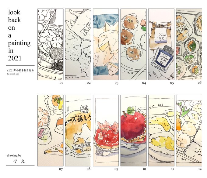 2 15 #2021年の絵を振り返る ペン画編 大体食べもの… 21/12/30 17:41