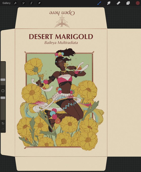 🌼WIP!🌼 really love that each kingdom in Elyos has a national flower so im drawing seed packets of each flower for the main royal sibs still working on overall design but started off with the desert marigold for Solm #FEEngage #FireEmblem