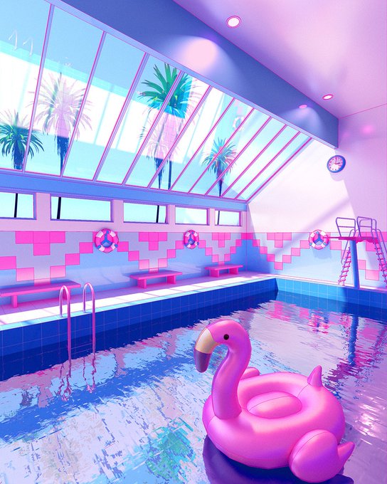 Pool pt 2 🦩🦩 Another study, still need to learn and adjust the water texture, the interior based on reference #illustration #aesthetic