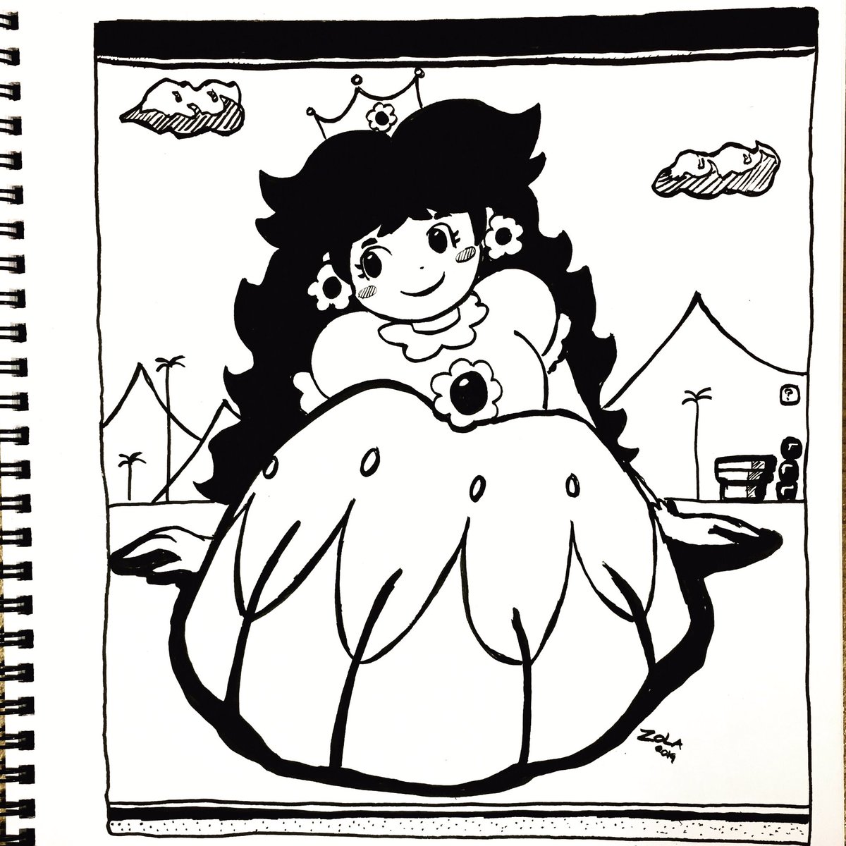 Inktober Day 10 - PATTERN Oh Daisy! W/ the pattern she wears on her original dress. I wish SML was more appreciated ❤️🌼 #inktober #inktober2019 #ink #illustration #art #artists #doodling #drawing #nerdart #geekart #supermarioland #princessdaisy #gaming #gameboy #nintendo #Retro
