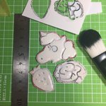 反転コピーと速乾タミヤセメントで1.2mmと0.2mmプラ板に転写 上手いこと切り抜いたら貼り合わせて UVレジンでいい感じに盛ったら 仮原型出来上がり #絵レキバン