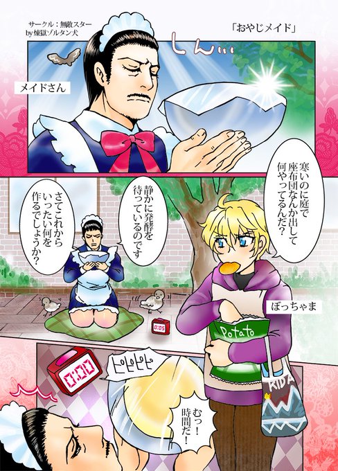 支配と服従とフリルとバイオレンスのちょっぴりえっちなほのぼのギャグ漫画「おやじメイド」はこういう漫画です!過去のですけどお試しどうぞッ!ご賞味下さい!『発酵と錬成のおやじメイド』 #創作漫画 #漫画が読めるハッシュタグ