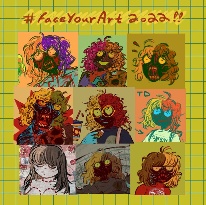 I feel like I did a lot of art this year so I made two!! One for traditional and one for digital 🧟♀️🧠 #artvsartist2022 #FaceYourArt2022