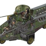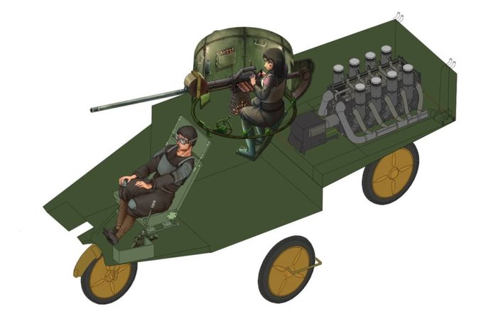 まだ完成していないですがオリジナル戦車の表面と中身です。二人乗りのミニ戦車です。 #イラスト #絵 #架空兵器