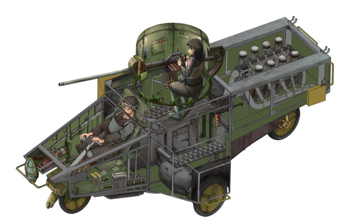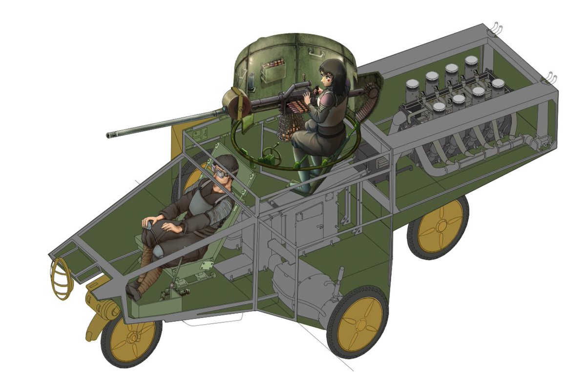 オリジナル戦車のエンジンはU型8気筒の設定にしました。小型戦車に強力なエンジンを採用することで速力が出せるようになっています。その代わり、エンジン部品数が通常の直列型より多くなっている為、乗員が2人だけのこの車両ではメンテナンスの負担が大きい設定です。 #イラスト #絵 #架空兵器
