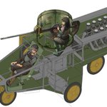 プロペラ戦闘機も飛んでいる架空戦記世界ではありますが、投石器がとても好きなので登場させています。 歩兵の火力向上用の背負式投石器、タンクデサント時に運用される戦車砲塔外付け式投石器です。 #イラスト #絵 #架空兵器 #illustration
