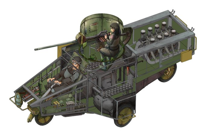 1 27 オリジナル戦車の砲塔内部のみ完成させました。20mmクラスの主砲で照準、発射、砲塔旋回等全て1人で行えますがスピード戦には不利なので対空攻撃は実質不可能となります。 #絵 #イラスト #架空兵器 #illustration 22/08/23 14:24
