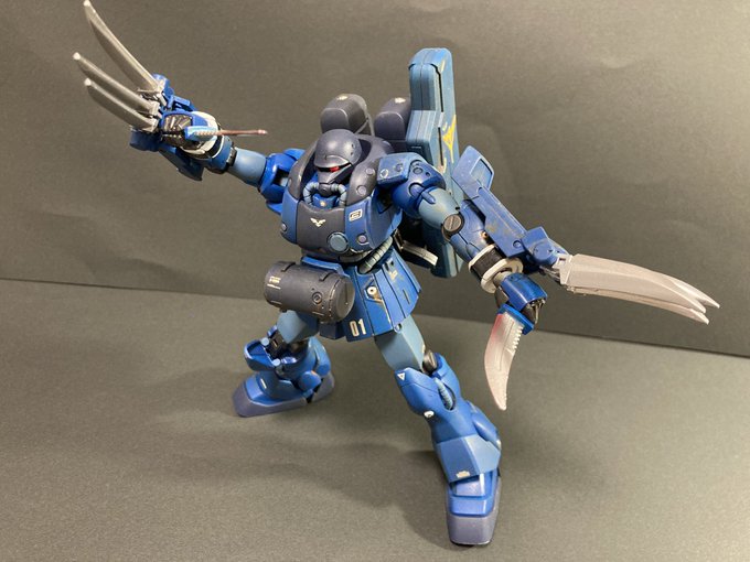 HG AMS-129M ゼー・ズール ポージング! クローとナイフの組み合わせ最高ですねー! 全ての装備外してもこれまたカッコいい! 前掛け部分は一体型を切断して可動できるように。膝立ポーズしたかったので。 #ガンプラ好きと繋がりたい #ガンプラの画像を貼るとRTされると聞いて #ゼーズール