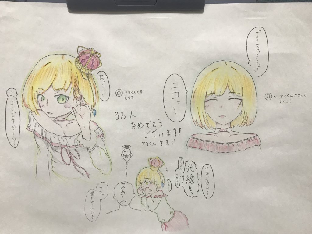 #アキくんちゃんアート アナログ絵で失礼します! アキくんの耳が好きです!アキくんの笑顔が好きです!アキくんのことが好きなアキネコ達がすきです! 30000人企画最高でした! バイノーラル配信がいつかくることをゆっくりと願っております!