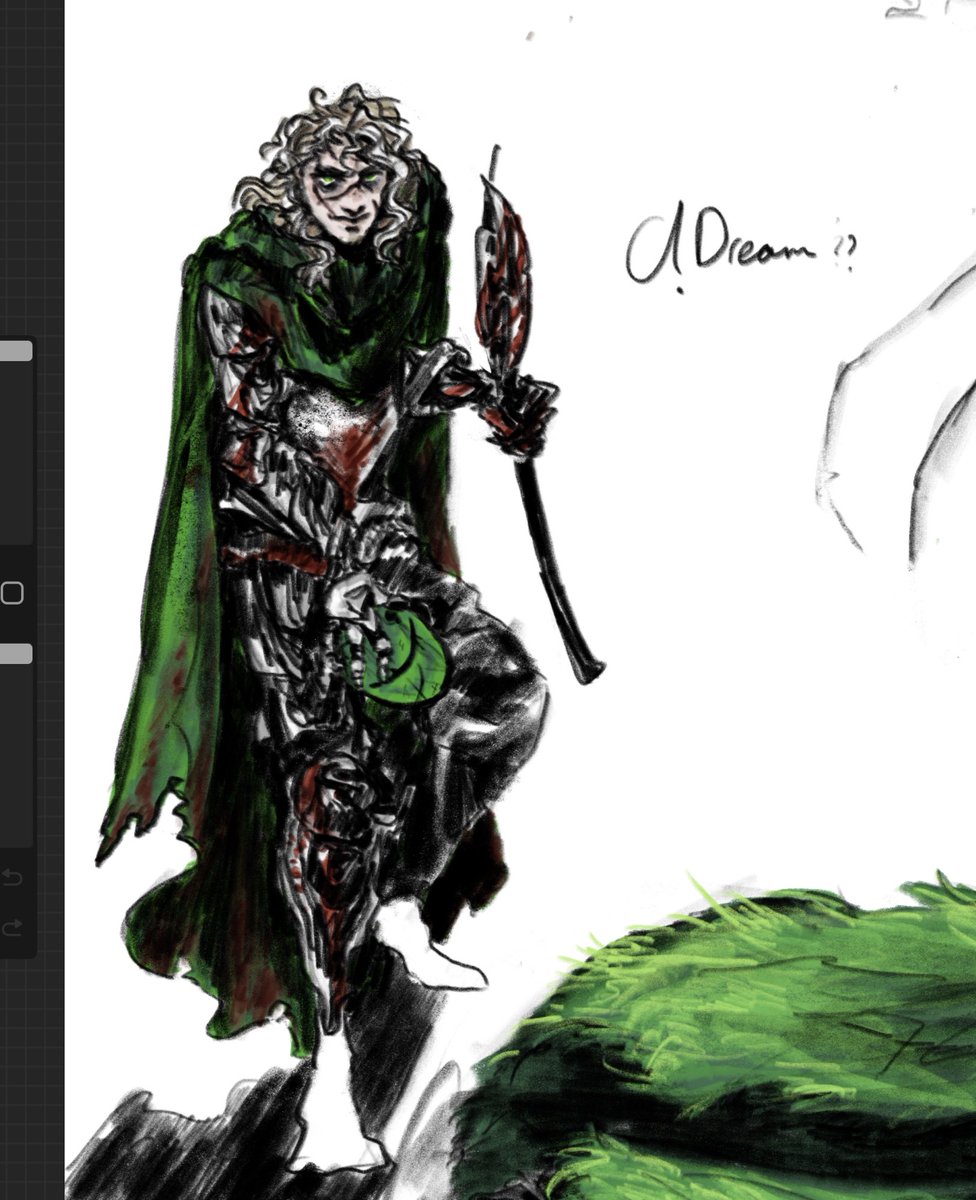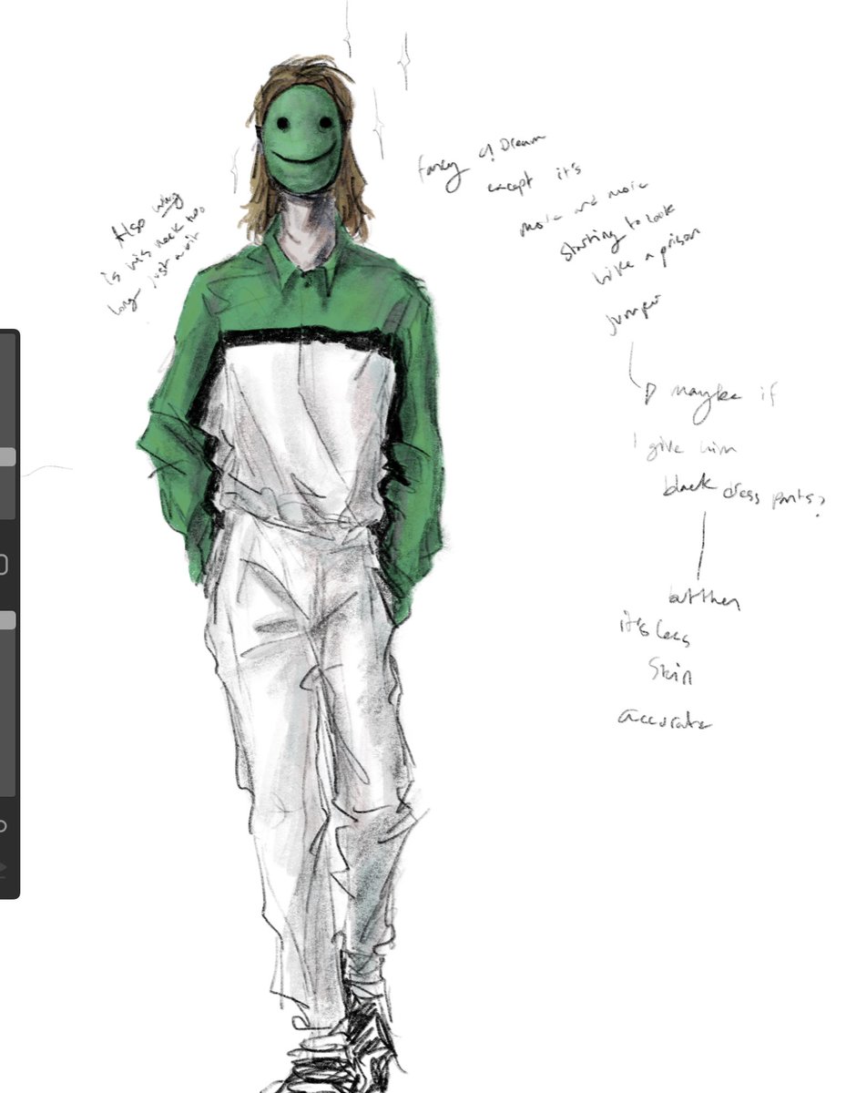 Sketch of dream in a suit apparently. I think the proportions are off but oh well. I’ll do better ones later #dreamfanart I guess.