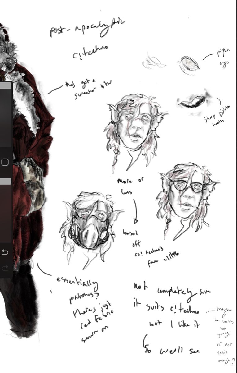 Sketches of technoblade wearing things that are suspiciously similar to some paintings of 17th century kings, except I can’t draw his face consistently. And a terrible interpretation of his pants because his mc skin doesn’t make any sense #technobladefanart #technoblade