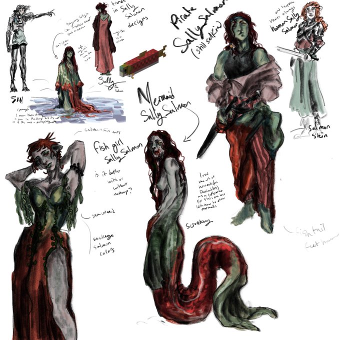 More sally the salmon character designs, this time my own versions of the three common tens in sally designs that I see around #dreamsmpfanart
