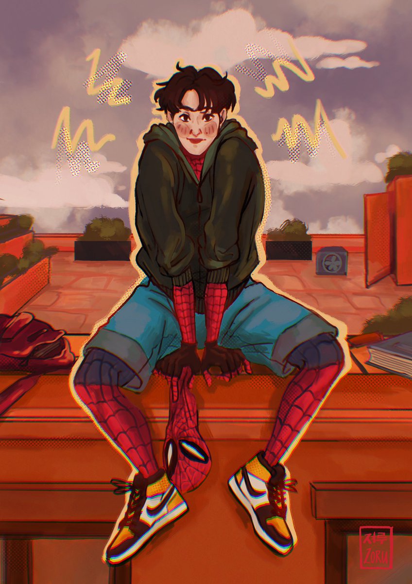 someone tell spider!mark to not do his uni assignments on the rooftops!!!!! #spidermark #nctfanart #marklee