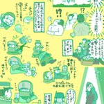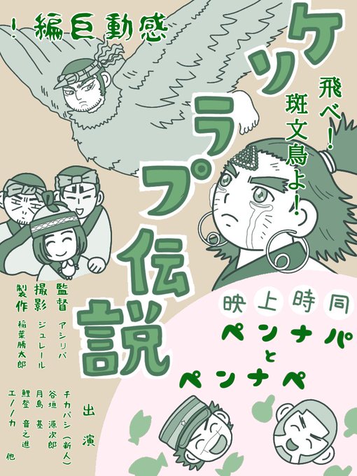 #ゴールデンカムイ版深夜の真剣お絵描き60分一本勝負 【お題】深緑、緑色など(21巻カバーイメージ) 2日も遅刻で申し訳ございません🙇 21巻✨緊張が続く中の癒やしのひととき、シネマトグラフを昔の映画ポスター風にしてみました。横書きの字は右からお読みください☺️