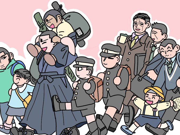 #ゴールデンカムイ版深夜の真剣お絵描き60分一本勝負 【お題】「勤労感謝の日」または「いい兄さんの日」 「いい兄さんの日」で描かせていただきました☺️兄弟大集合〜 謎次元の現パロです😂ゲンジロちゃんの妹フミちゃんは捏造100%です🙇💦