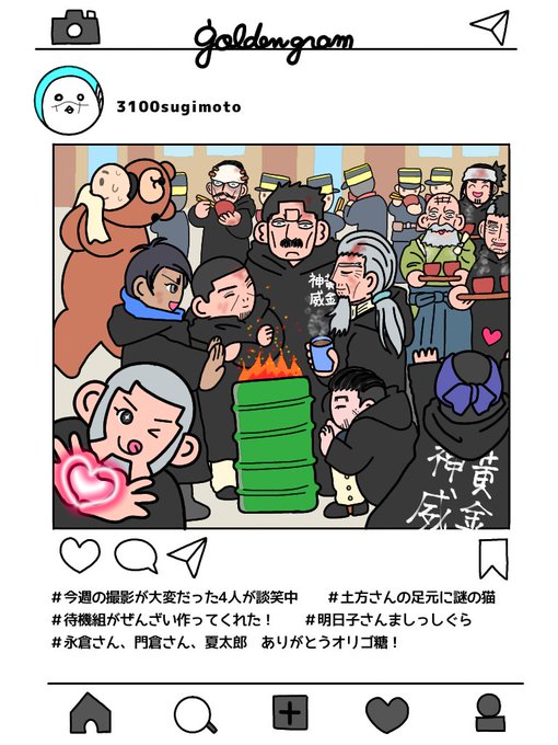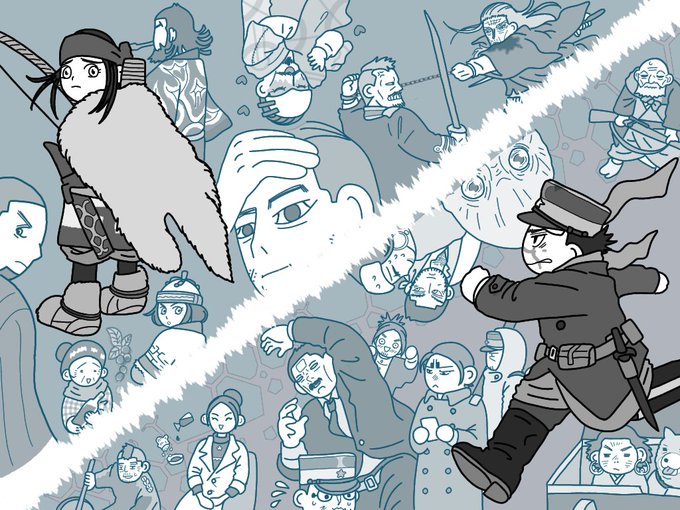 #今年も残りわずかなので今年一番伸びた絵を貼る 今年の2位と1位です。お題は【本誌を耐える為の絵】と【金カムロスを耐える為の絵】 どちらも辛い時の頼みの綱 俳優パロで、とにかく滾る思いをぶつけました🔥 改めて、ああ💦終わっちゃったんだ😭と思い知らされます😢