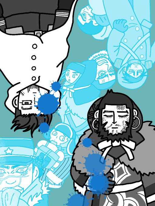 #ゴールデンカムイ版深夜の真剣お絵描き60分一本勝負 【お題】水色・白など(19巻カバーイメージ) 19巻は振り返るとツラいですね😭 ゴールデンシャワーな再会は嬉しかったのですが、喪失感も半端なかったです。…キロちゃん…😭
