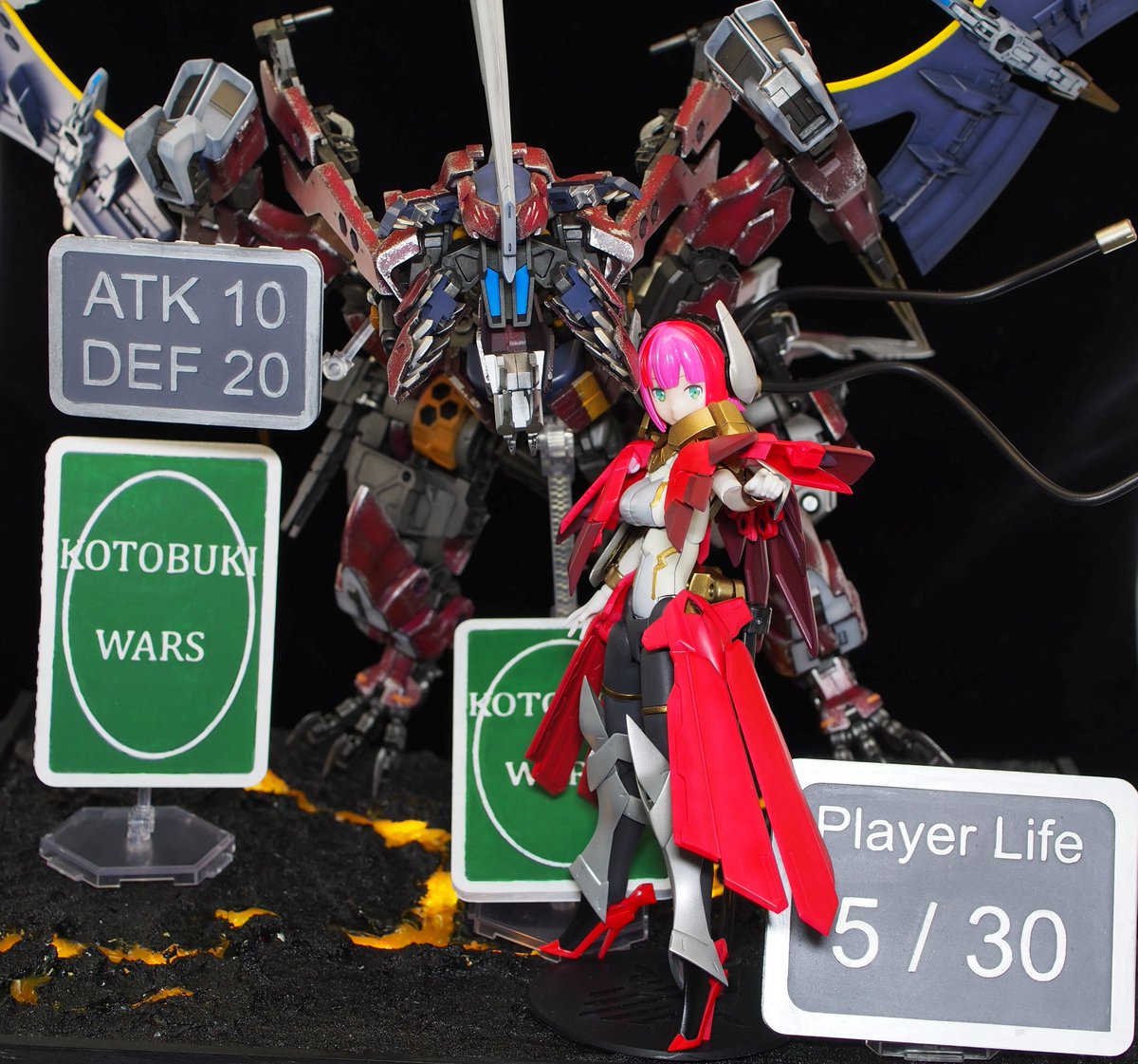 うちの娘「ウェールズ」が「コトブキウォーズ2050(オリジナルカードゲーム)地方予選」(大会名)で優勝しました。 作品名:切り札 ウェールズ:「地殻に眠りし機甲龍よ炎を纏いて甦れ!これが私の切り札!オーバーエイジ召喚!アグニレイジ!」 #メガミ4周年選手権 #4Bコース完成 #メガミデバイス