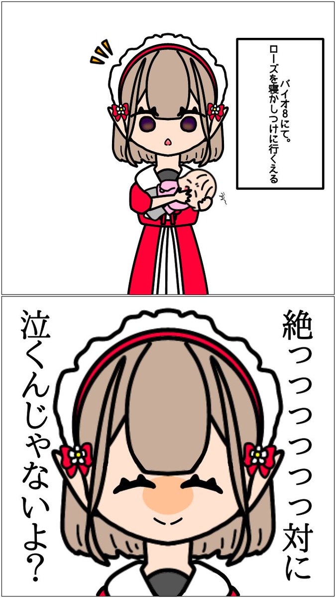 サロメ嬢がバイオやっていらしたので えるえるのバイオ見たくなって(見た) ガキンチョあやすのがドヘタクソの えるえる可愛い😍😍😍 #えるの絵だよ