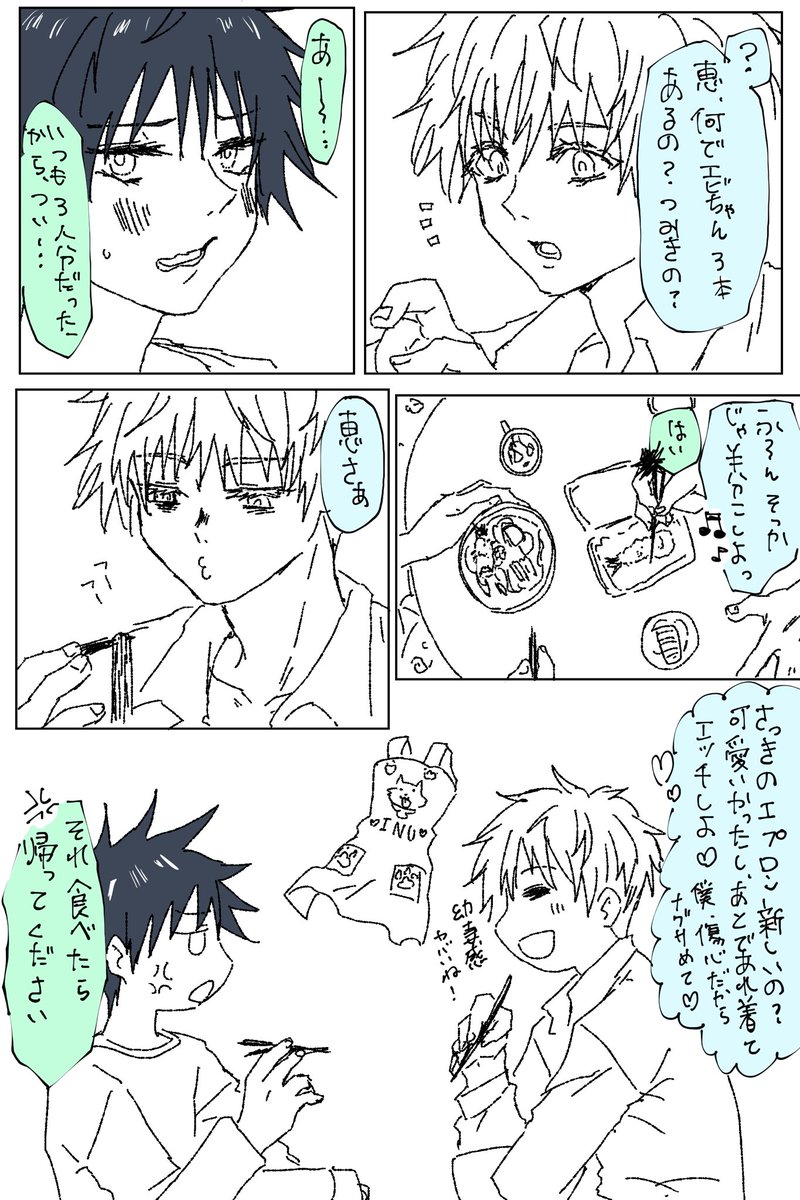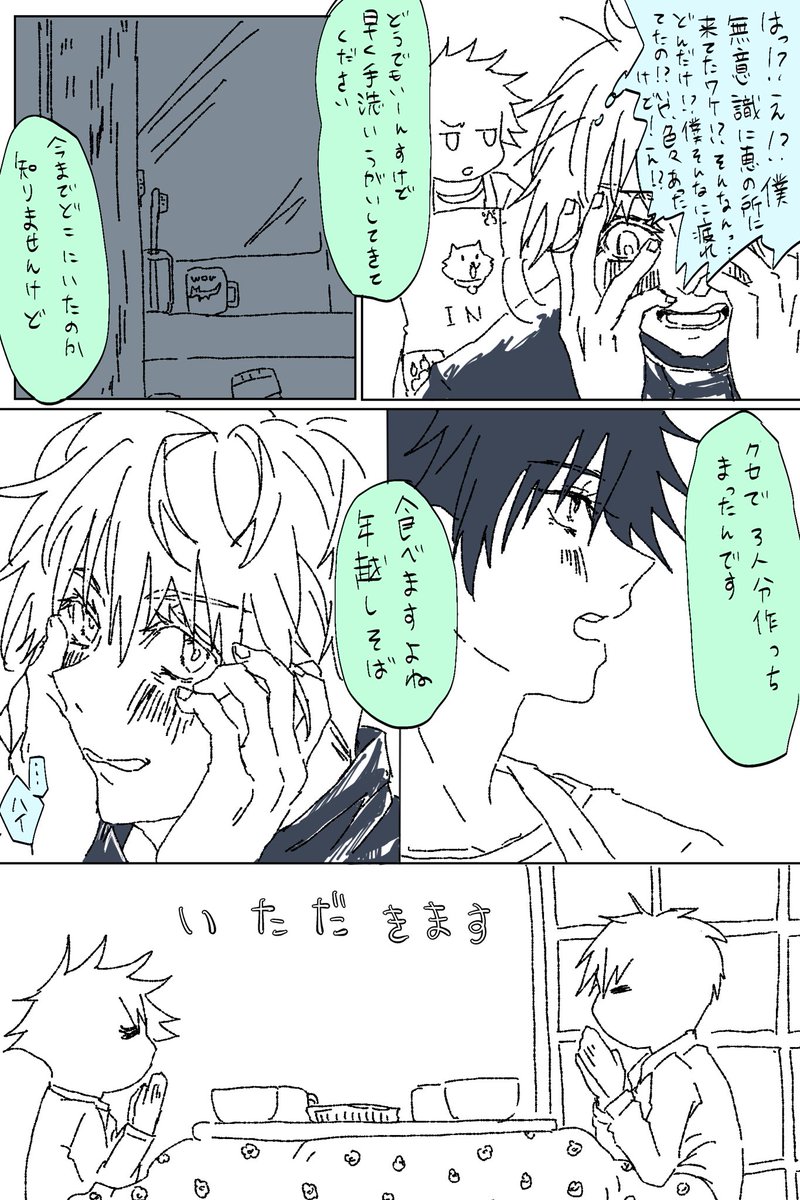 5 37 #五伏版ワンドロワンライ 第27回【朝ごはん/寝ぐせ/押し付ける】※ショタ恵。 初参加です。いつかの、お泊まり訓練の翌朝にあったかもしれない光景。 20/12/26 23:05