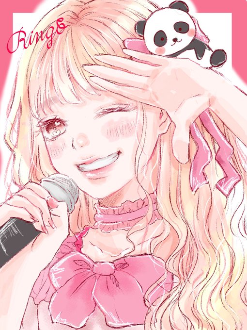 ピンクガール31🎀 今回のピンクガールちゃんは、 インスタでリクエストいただいた、 歌を歌っているふわふわロングヘアの女の子(頭にパンダ🐼💕)です! #絵描きさんと繋がりたい #絵柄が好みって人にフォローされたい