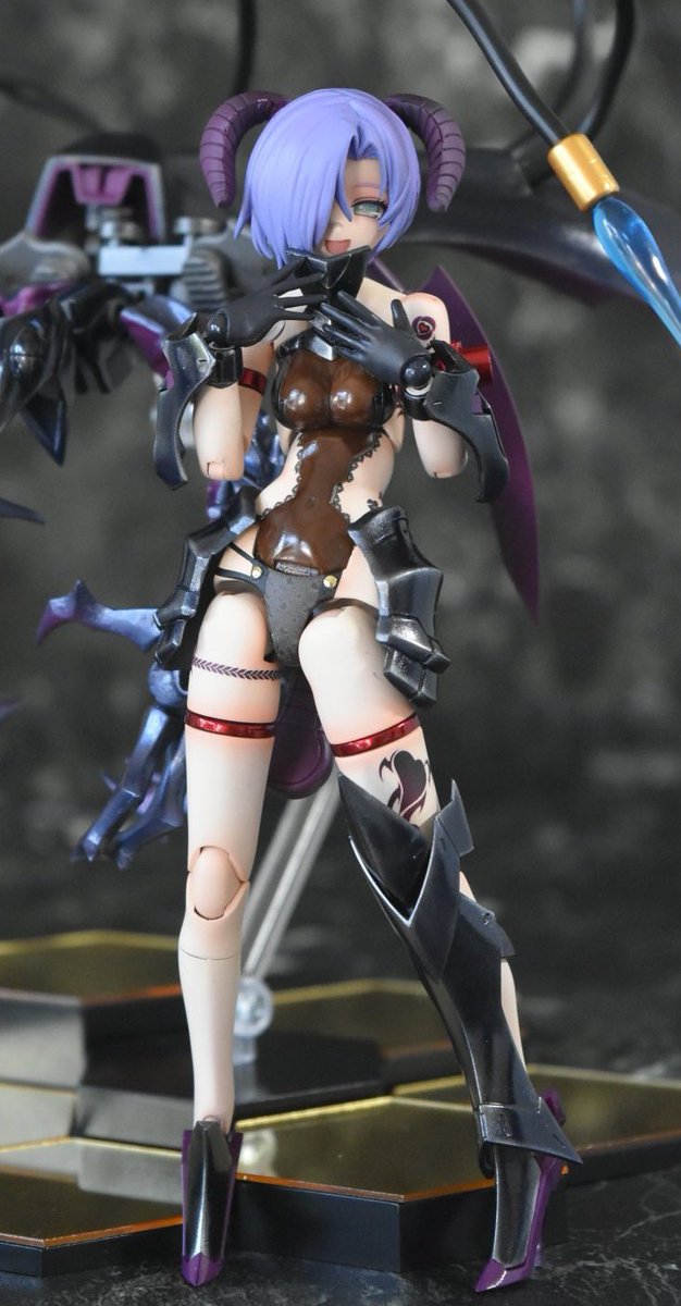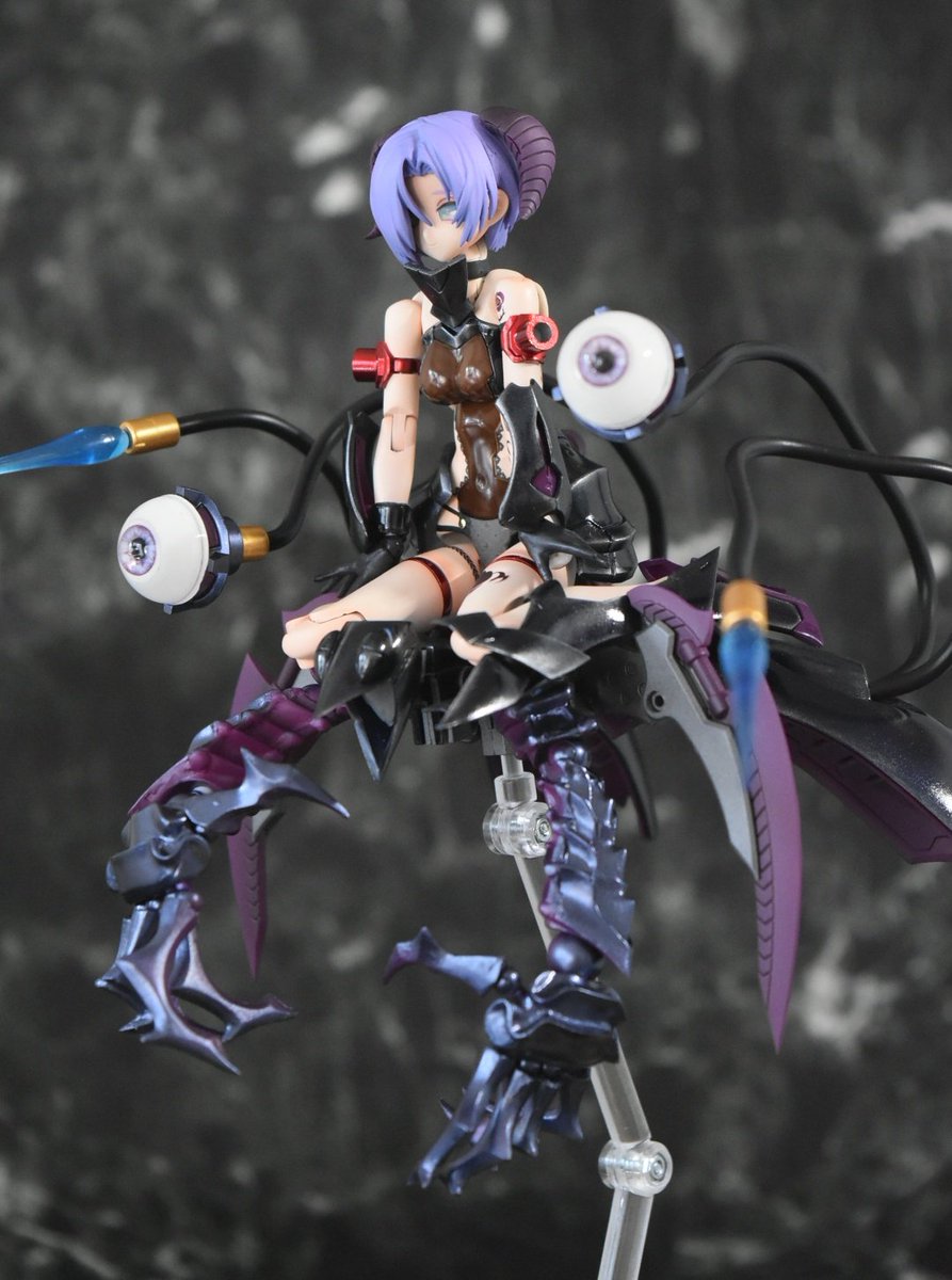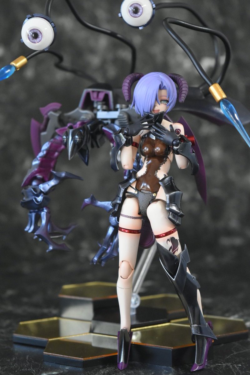 新作メガミデバイス 【アーリマン】完成 仕上げ間近で放置してました、すみません。 装甲をはずし組み換えると使い魔に変身 背中に乗れます 肌色にはラスキウスのホワイトピーチを使いました、色味が丁度よくて気に入りました。今後も肌色メインの作品が控えてるので買い足そう。 #メガミデバイス