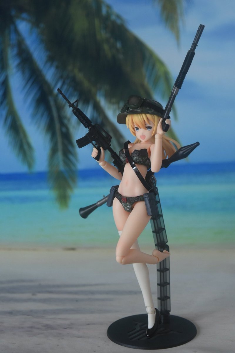 アリスギアより バージニア グリンベレー 完成です。 Red Lightさまのヘッドパーツと PLAMAXの下着素体ランを使用しています。 アーミー雑誌のグラビア風です。 そんなのがあるかは知らんけど。。