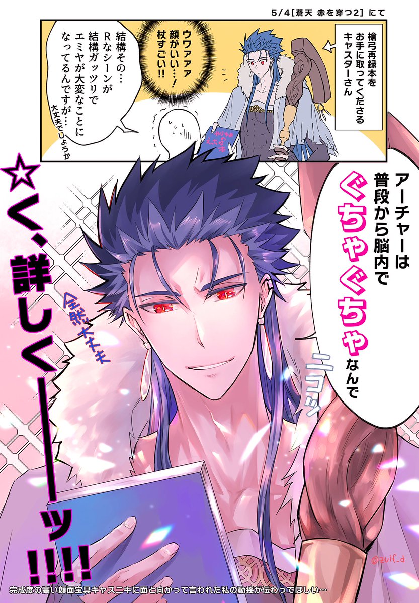 12/18 #蒼天赤を穿つ3 |西3 B75b「ZUi.F」新刊 『SAVASTA BON』B5/68P/全年齢向 カルデアSNSがテーマのクーエミ詰め合わせ本。槍弓・キャス弓・狂王弓・プニ弓・ミニクー弓・セタ弓+クー族わっちゃり →Pixiv|pixiv.net/artworks/10358… →とらさん|ec.toranoana.jp/joshi_r/ec/ite… 槍・術・all (1/2)