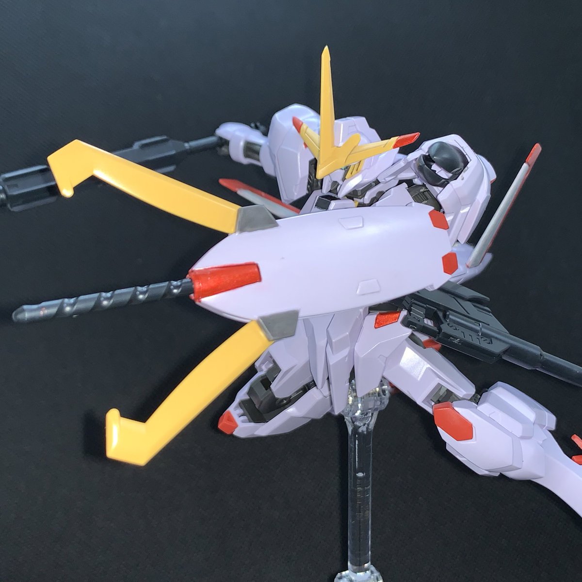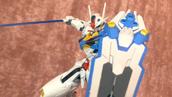 HGAC ガンダムアスクレプオス完成しました。 凶悪感ある顔素敵…✨ スミ入れと艶消し吹いて簡単フィニッシュ。 変形させるとズ○ック…w #ガンプラ #ガンプラの画像貼るとRTされると聞いて