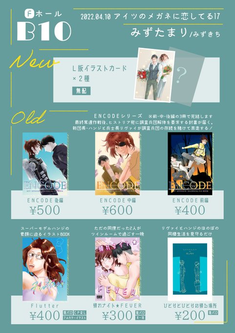 4月10日東京流通センター(TRC)【アイツのメガネに恋してる17】にサークル参加します! youyou.co.jp/only/wall/mega… お久しぶりですみずきちです。ギリで申し込みました!新しいものは出せてポスカ1枚とかだと思うんですけど、空気を吸いに行こうと思います。よろしくお願いします