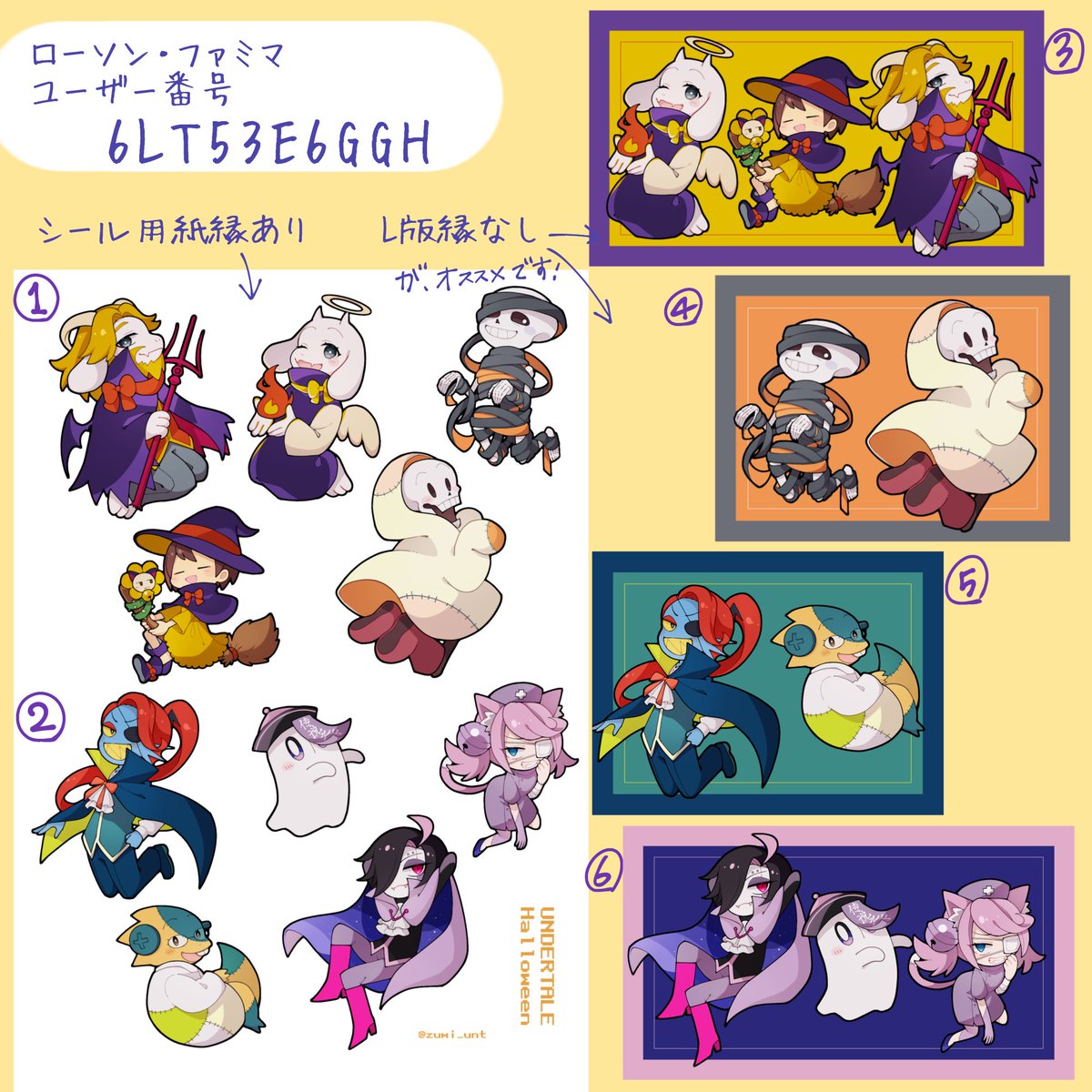 ハロウィン絵をネップリ登録しました🎃 画像のシールはL版印刷でのサイズです! 【ユーザー番号】6LT53E6GGH 【プリント期限】11/9の15時頃まで L版30円/枚、シール用紙200円/枚です