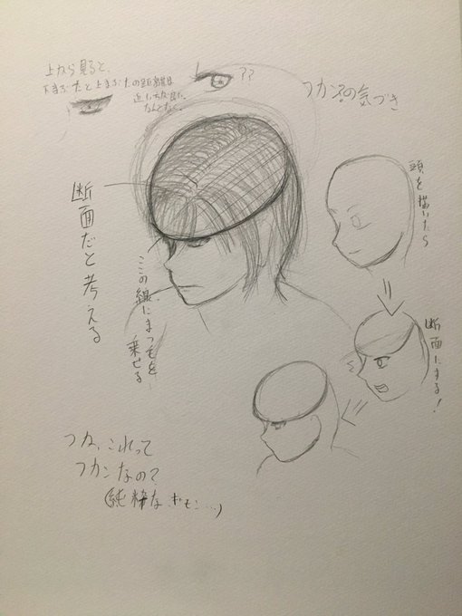 断面として考えたら、この角度も描けるんじゃね?と。 #イラスト #ゴミ絵師の気付き