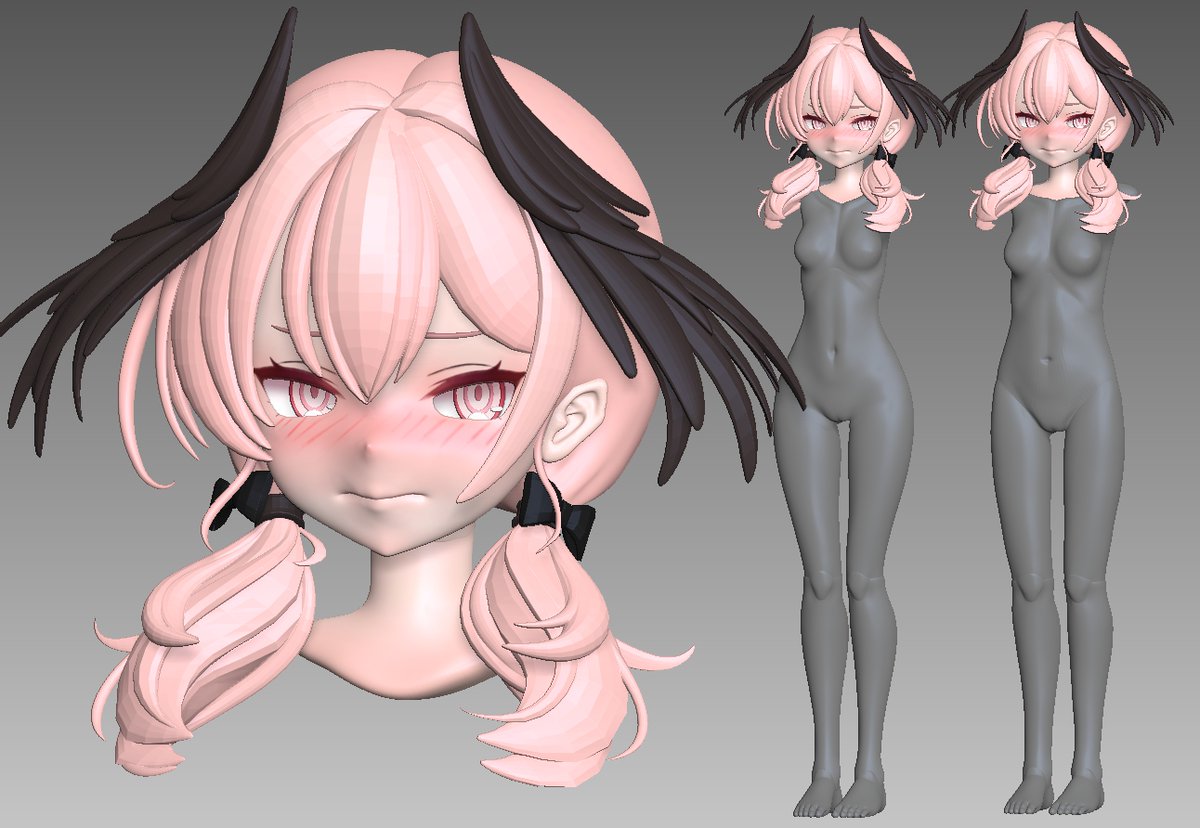 おさげ部分がある程度納得いったので素体修正中 もっとお肉削ったほうがいいのかなぁ