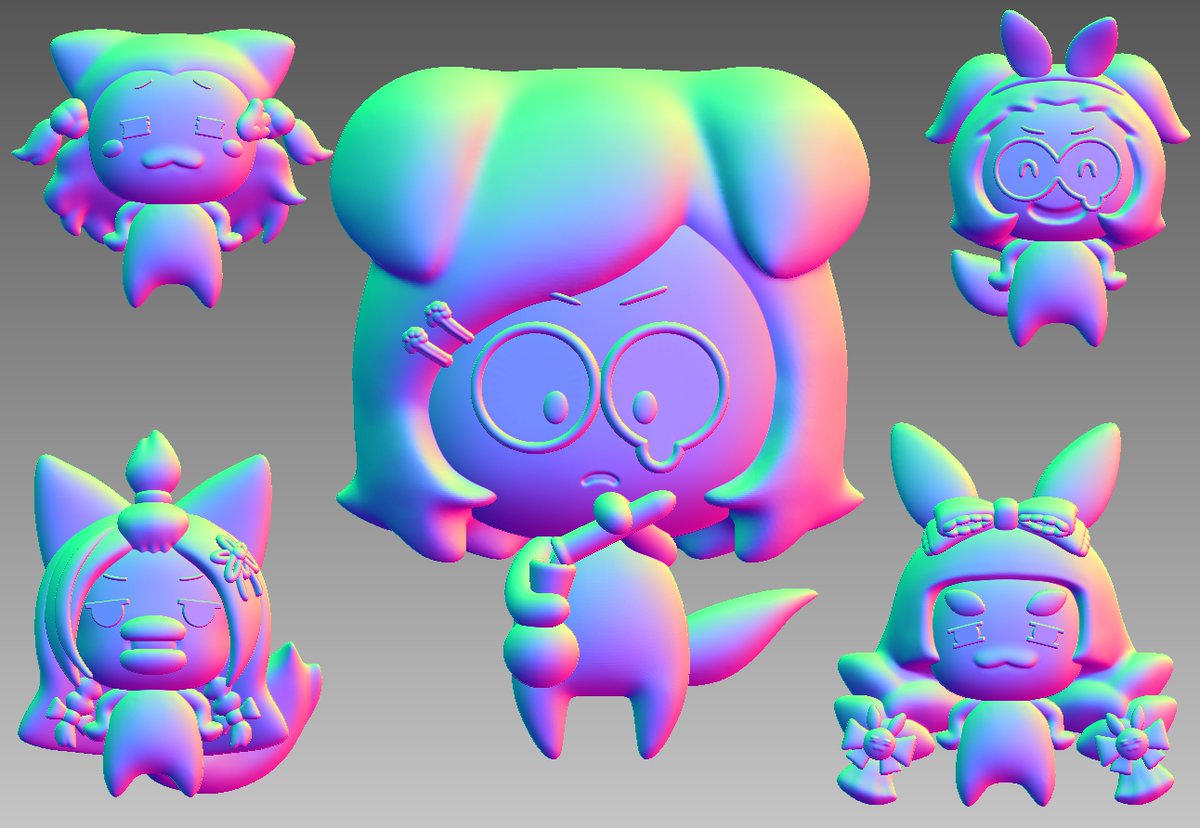 最近よく配信見てる4人?をモデリングしました #狛絵 #かりにゃ〜と #兎野画廊 #狼ノ絵