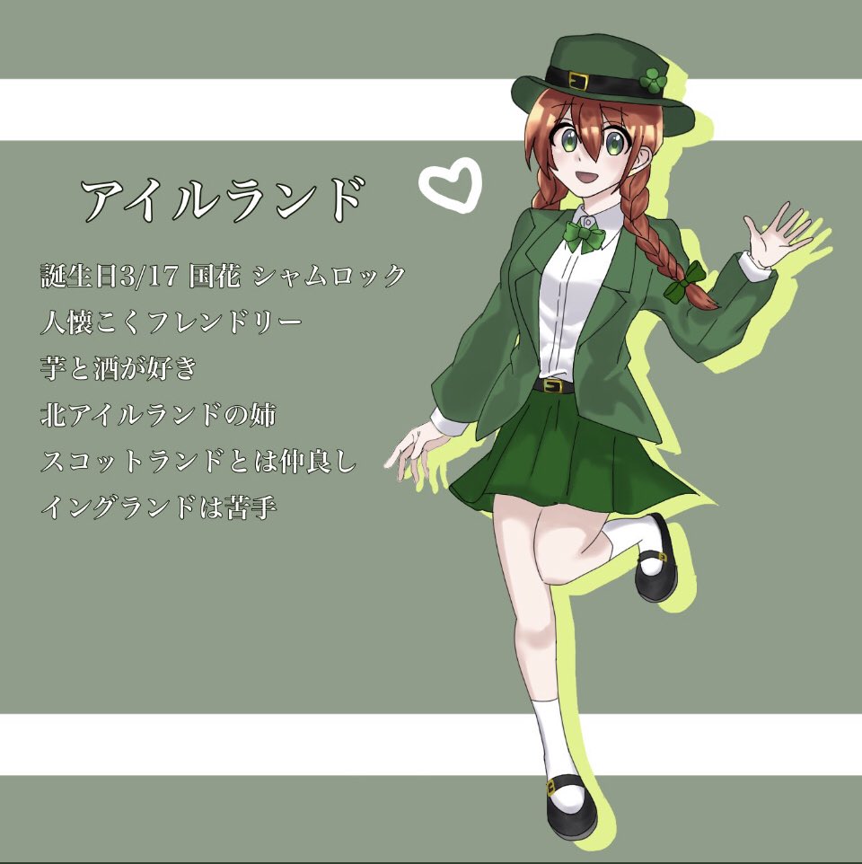 #国擬人化 #イラスト好きな人と繋がりたい 久しぶりの国擬 🇮🇪ちゃんです。たまに更新するかも