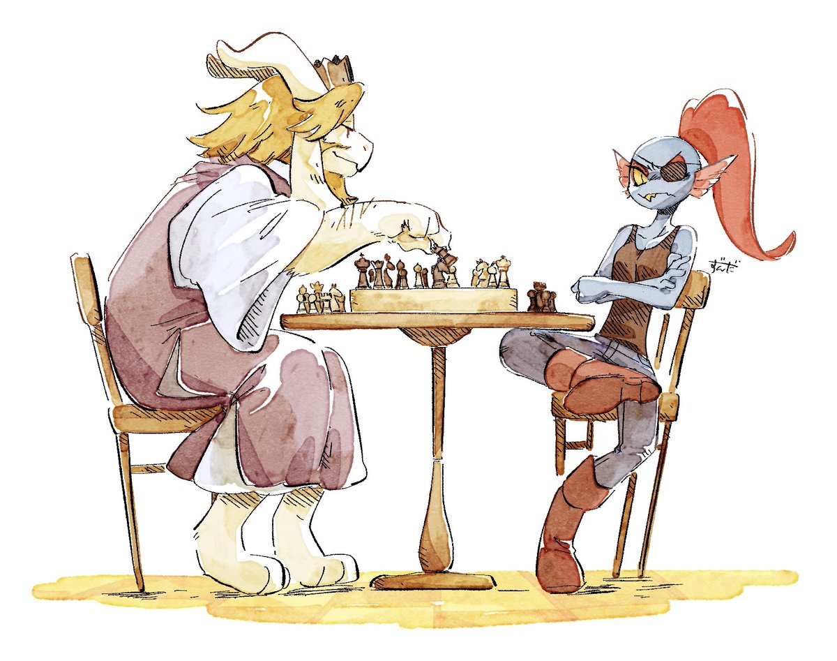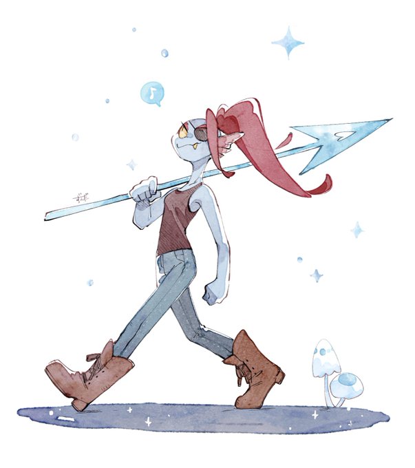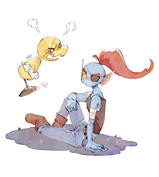 推しに推しの服着せるやつ描きたかった! アンダインinヨーコ!赤髪ポニテお揃い!銃は描けなかった