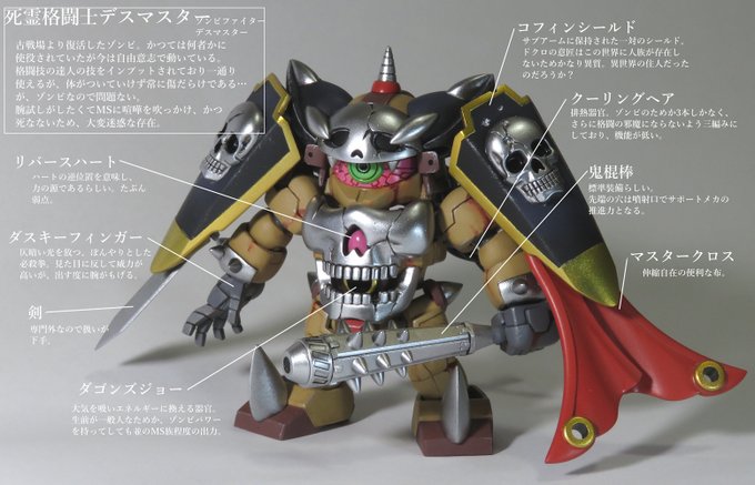 作品名 死霊格闘士(ゾンビファイター)デスマスター BUG&部隊兵に癖の強いパーツを組み合わせて、ガンドランダーなデスマスターを制作しました。 インプットされた異国の格闘術に肉体がついていけず、常に傷だらけですがゾンビなので平気です。 #GBCJ2021 #みんなでSDガンダム #一般の部