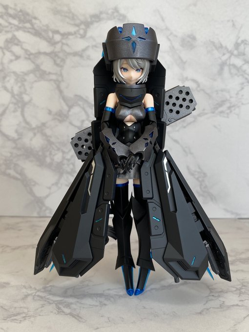 メガミデバイス7体目 バレットナイツ エクソシスト ウィドウ完成!! 缶スプレー、水性塗料の筆塗り部分塗装、トップコートつや消し仕上げ。 今回は手持ちのMSGを使って少し武装を追加してみました。 #メガミデバイス