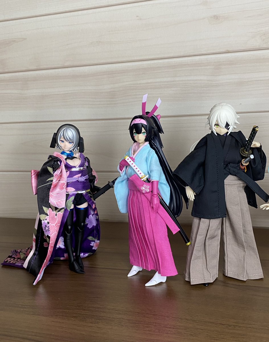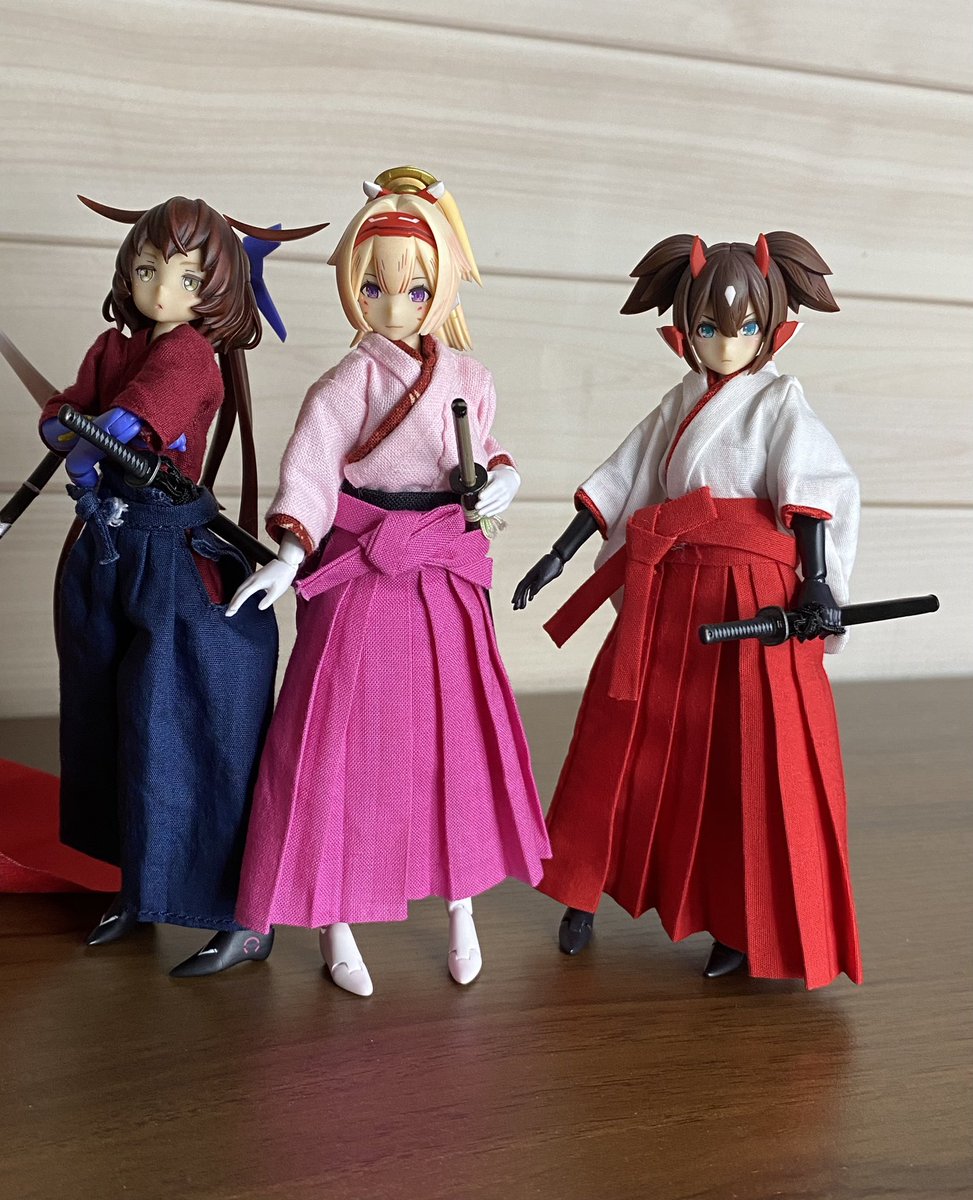 こうして並べてみると壮観だなぁ(しみじみ) 着物は私好み。(1人だけ巫女装束)みんな素晴らしい!! #メガミデバイス