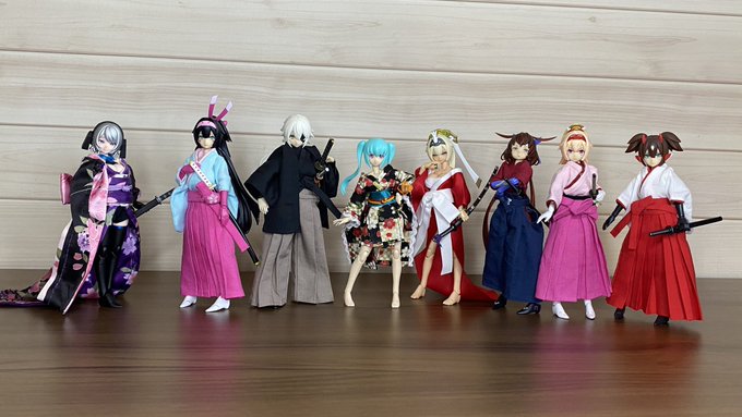 8 35 こうして並べてみると壮観だなぁ(しみじみ) 着物は私好み。(1人だけ巫女装束)みんな素晴らしい!! #メガミデバイス 23/04/20 18:55