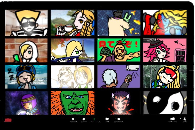 「気が散る人はzoomで数人に見張ってもらうのがいい」って聞きました…… このメンバーなら集中出来るかもしれない…… #格ゲーキャラ描こうぜ