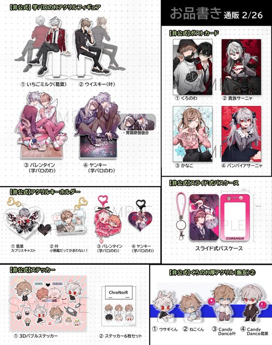 【通販のお知らせ】 グッズが無事入荷完了したみたいなので、26日の21時から通販を開始しようと思います! 🎀[SHOP] zuo.booth.pm 🎀[TIME] 2/26(日)21:00〜 [SAMPLE] ① reurl.cc/7Rreoy ② reurl.cc/d7GX5D 大変長らくお待たせしました…よろしくお願いします🙇