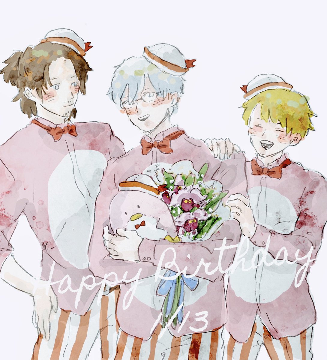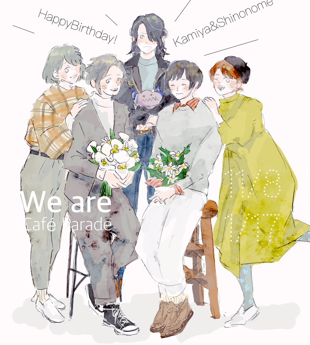 おめでとう!!!☕️ 東雲の誕生日に描けなかったことがずっと心残りだったのでまとめて祝っちゃおうと思ったのに神谷の誕生日にも間に合わなかったという…… #東雲荘一郎生誕祭2020 #神谷幸広生誕祭2021