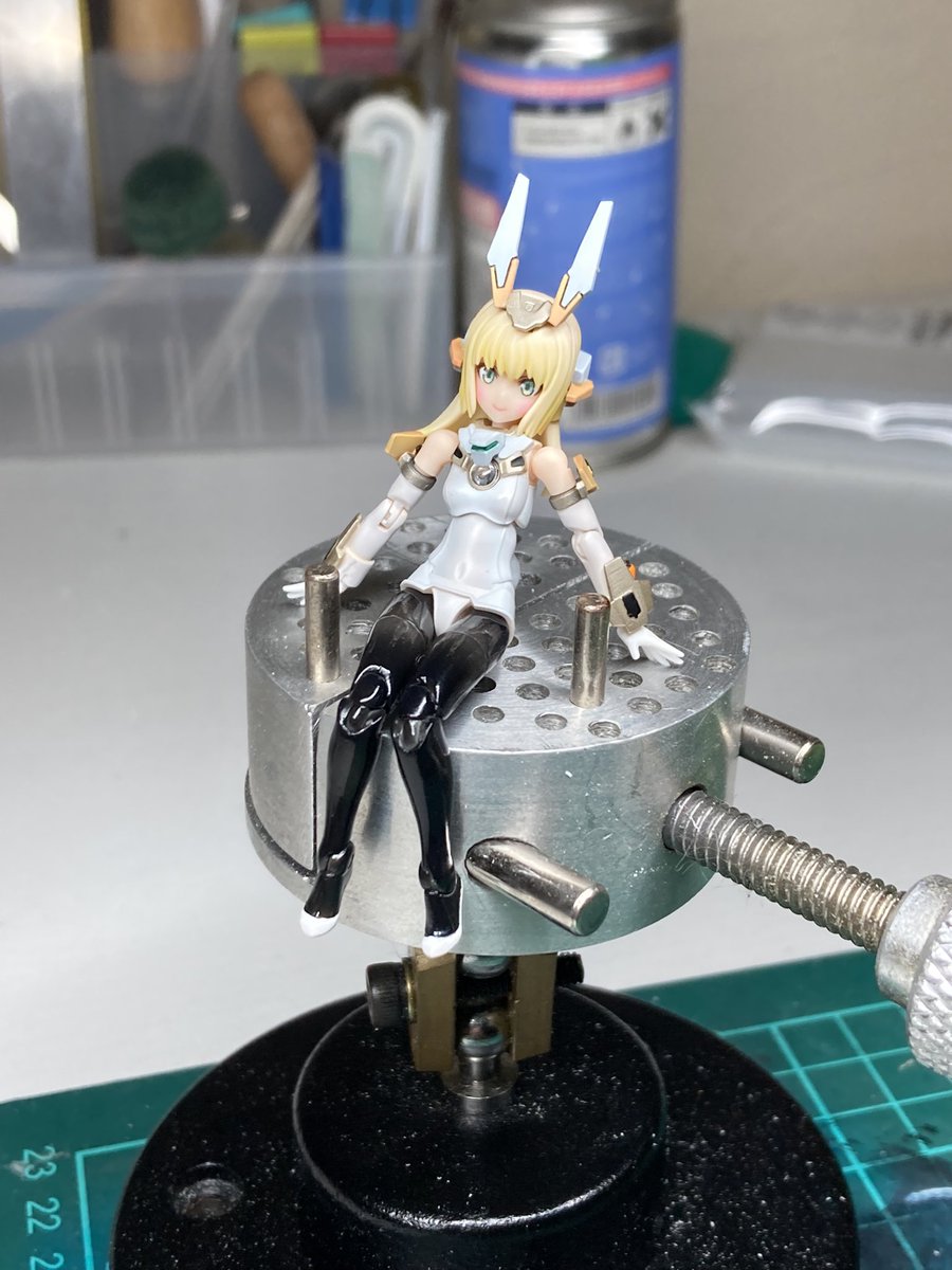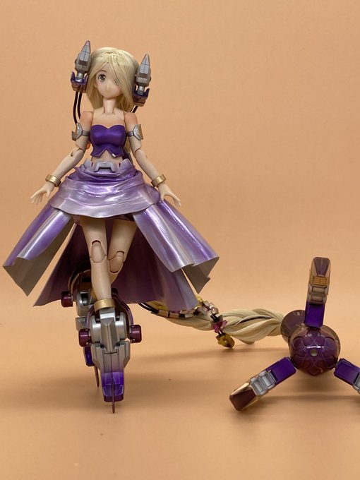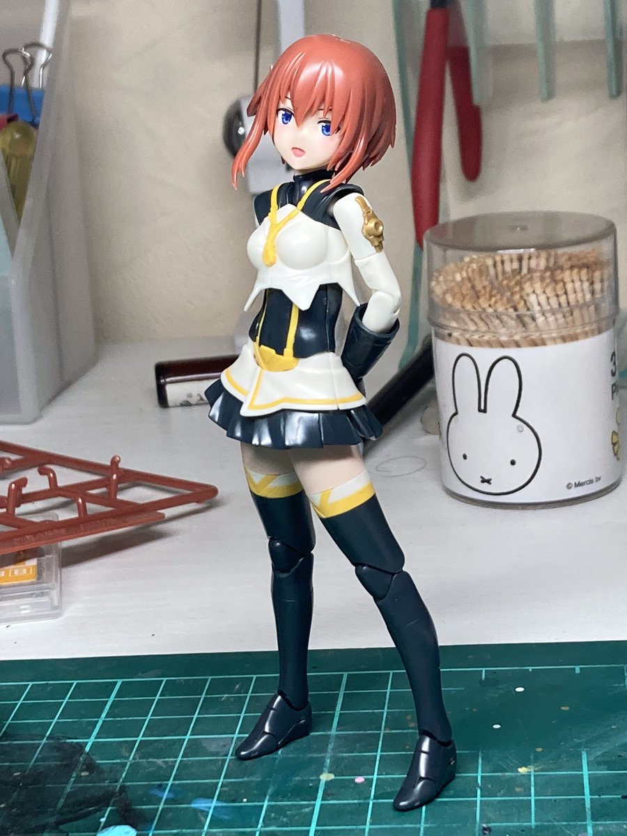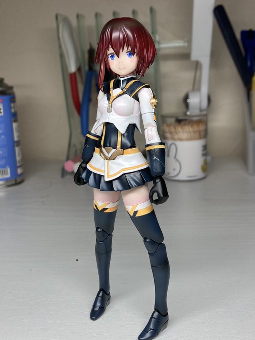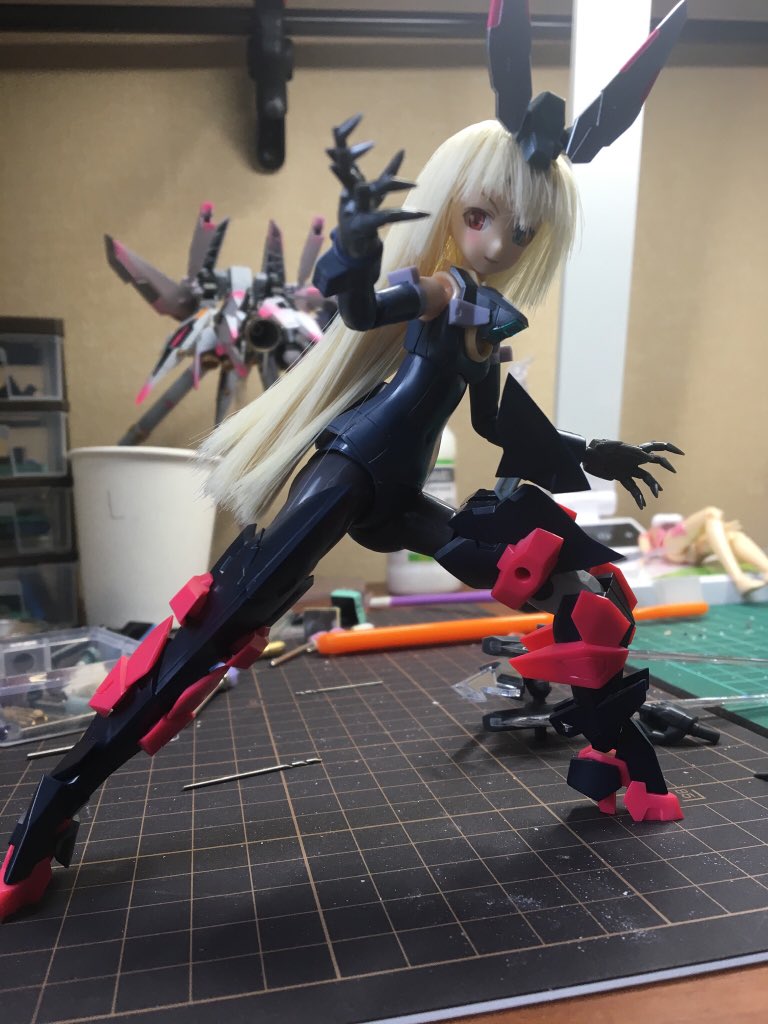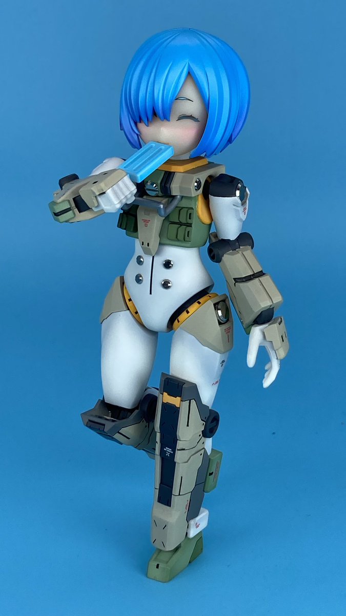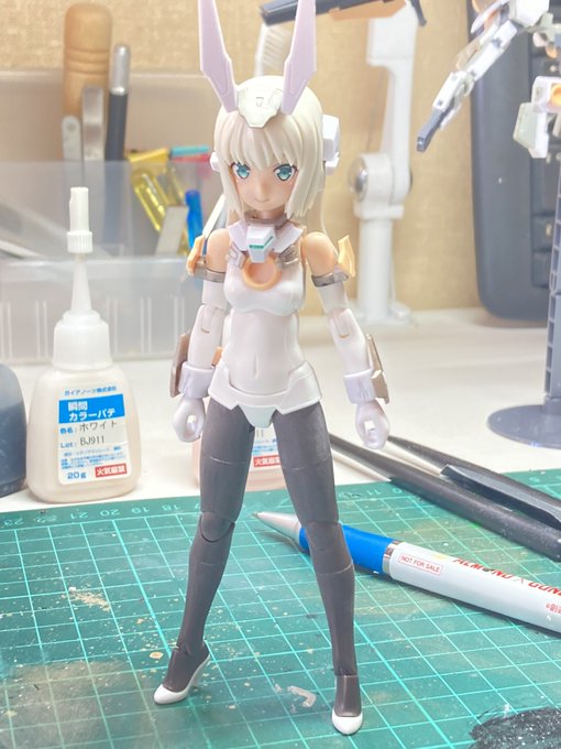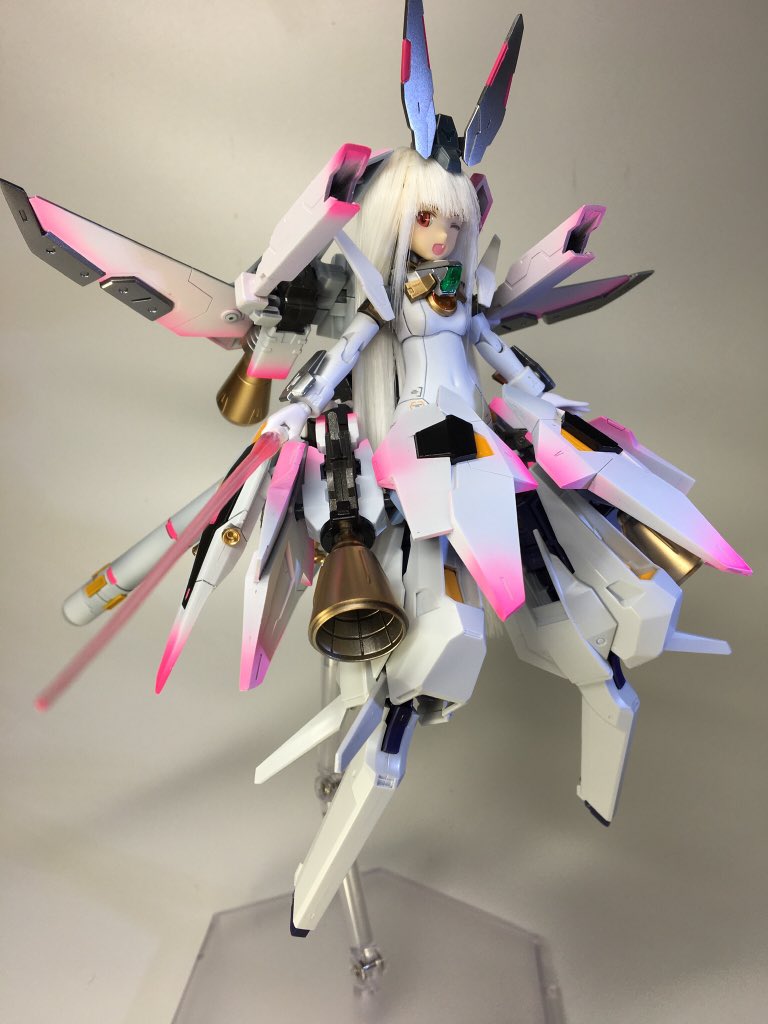 #出るぜUNreal #UNリアルver2 バーゼラルドanimationVer で参加します キットの素材のままにスジボリやメタルパーツでディテールアップしてます パケ顔を参考にアイリペしました 他にもヘソを掘り直したりアンテナ角度を変えたりもしてます 何よりキャワイイ〜! #バーゼラルド #メガミデバイス