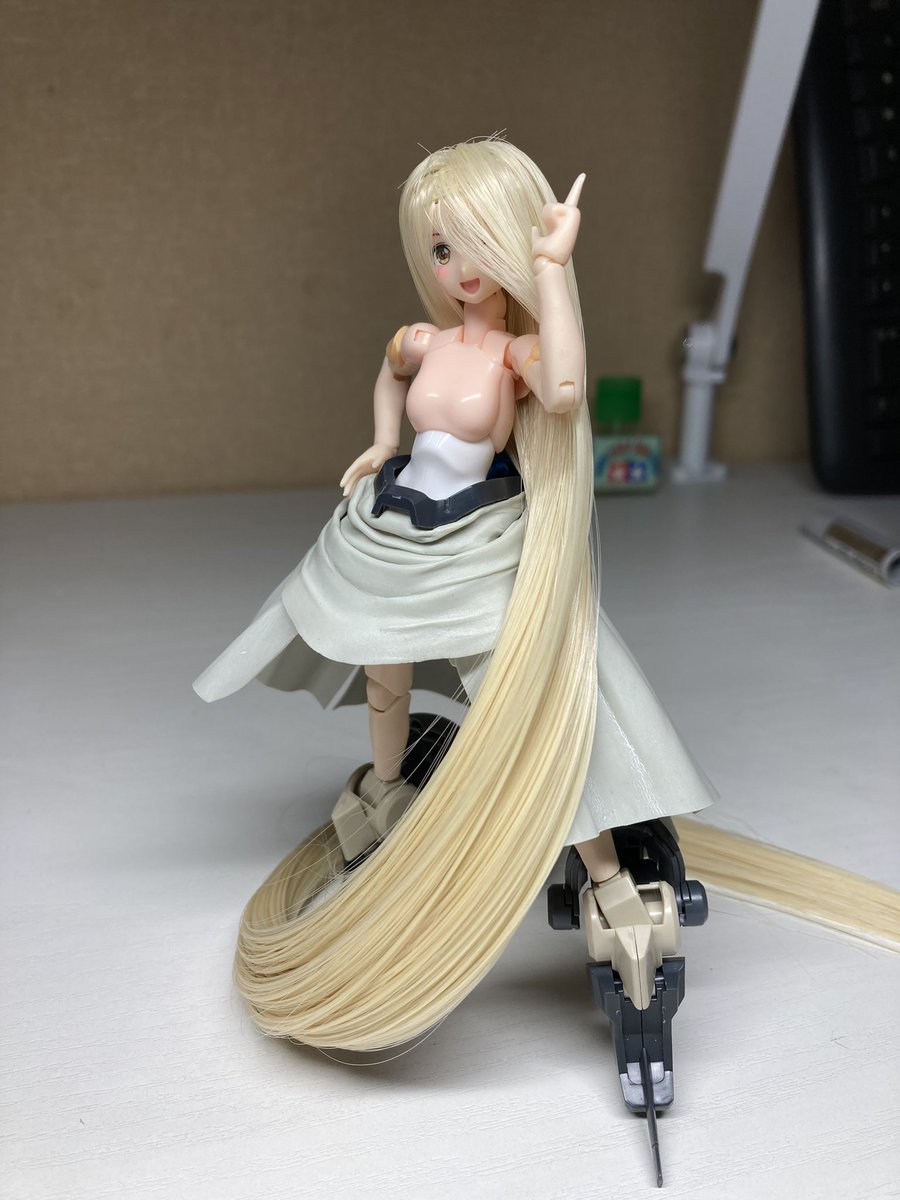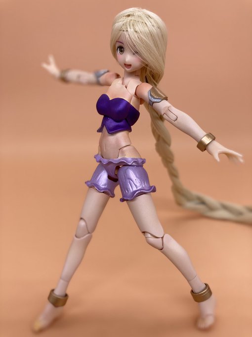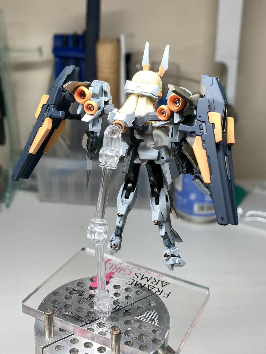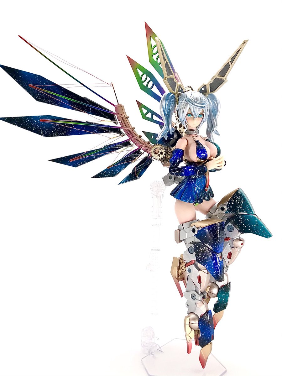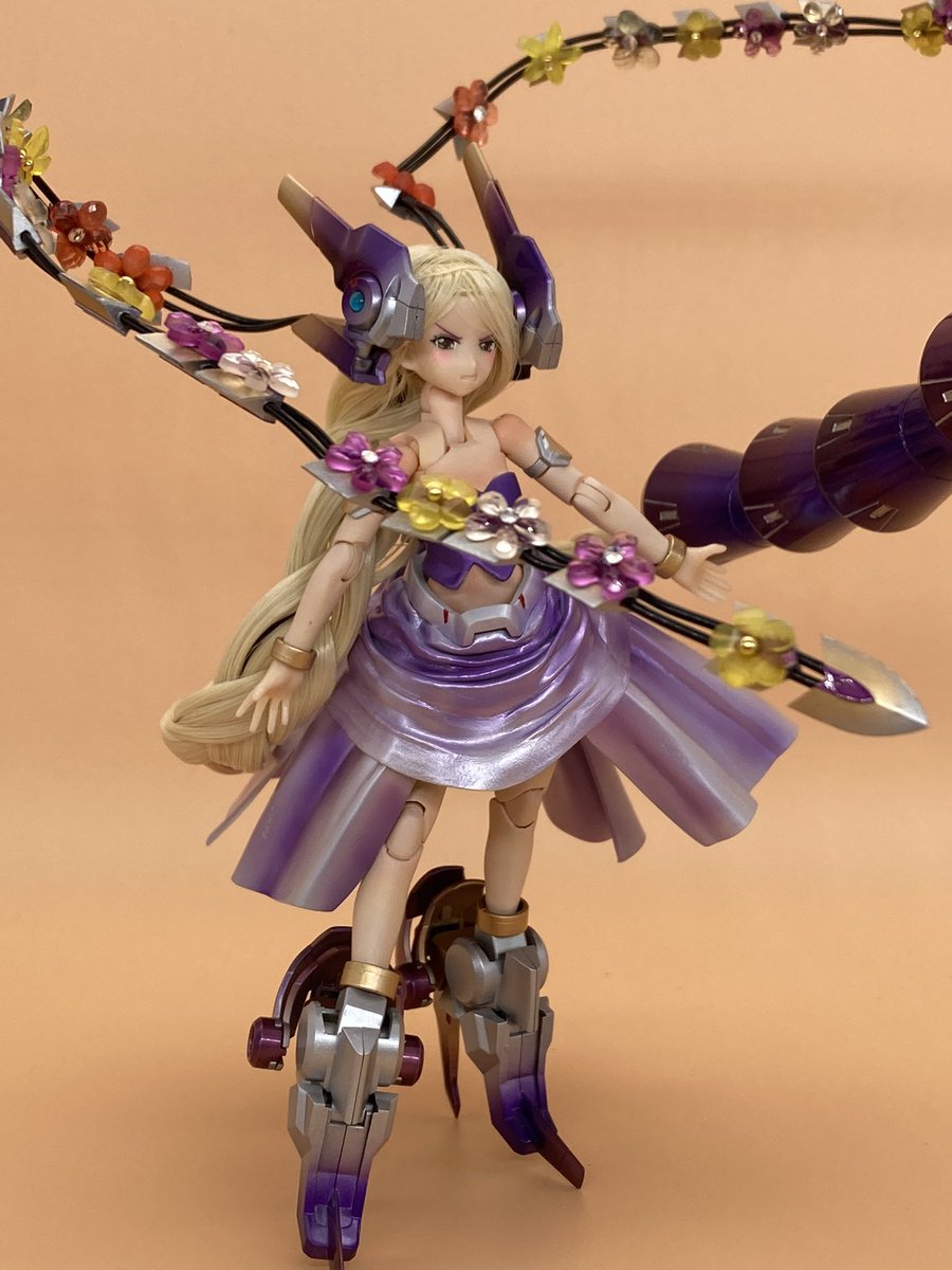 #出るぜUNreal #UNリアルver2 バーゼラルドanimationVer で参加します キットの素材のままにスジボリやメタルパーツでディテールアップしてます パケ顔を参考にアイリペしました 他にもヘソを掘り直したりアンテナ角度を変えたりもしてます 何よりキャワイイ〜! #バーゼラルド #メガミデバイス